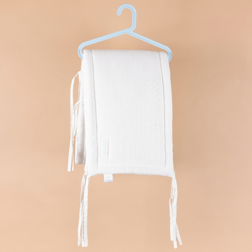 Zoek je een veilige en zachte afwerking voor het ledikantje van je baby? De Natalis bedomrander biedt extra comfort en voorkomt dat kleine armpjes of beentjes tussen de spijlen terechtkomen. Dankzij de handige lintjes maak je de omrander stevig vast, zodat hij goed op zijn plek blijft terwijl jouw baby rustig slaapt of speelt.